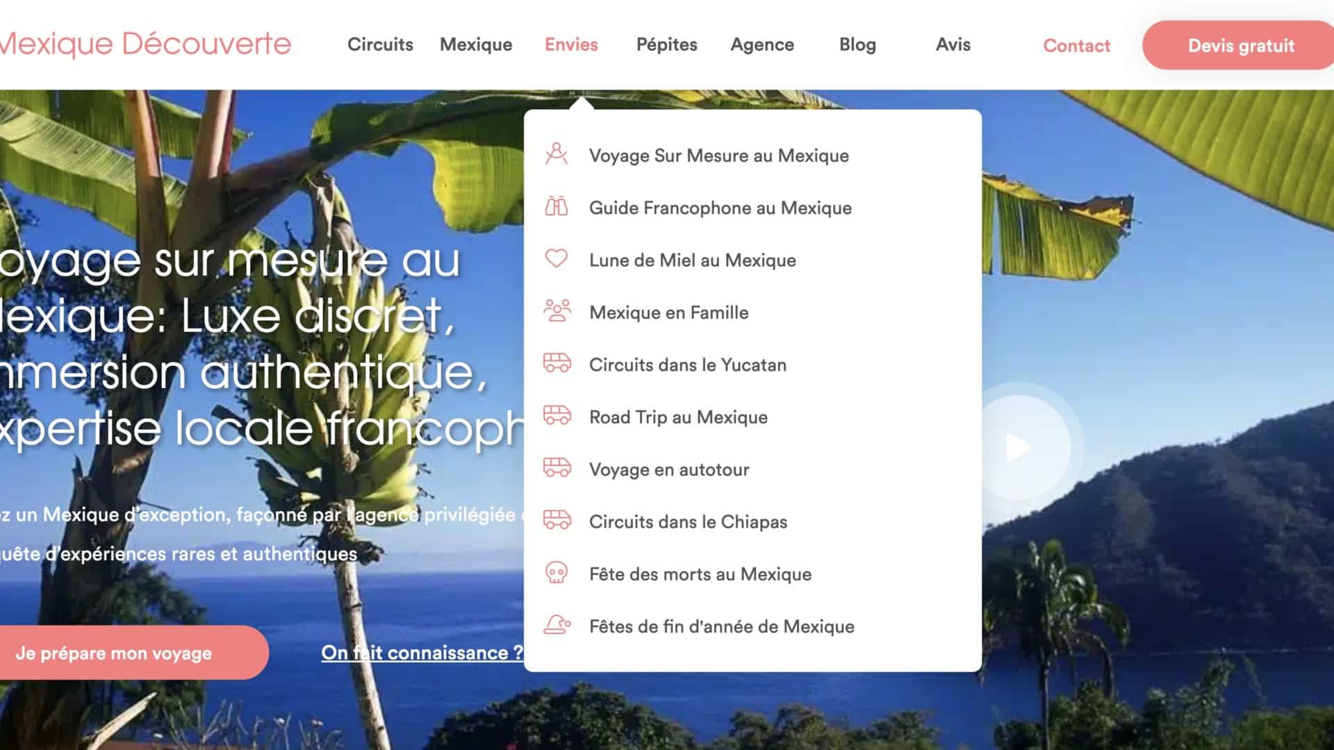 - Vous ouvrez la page voyage sur mesure : https://mexique-decouverte.com/activite/voyage-sur-mesure-au-mexique/