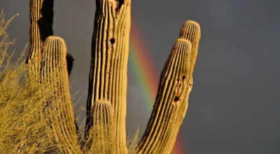 Depuis le haut sommet rougeâtre d’El Tecolote, on peut voir au loin des plaines verdoyantes, avec des rochers et des élévations de formes et de tailles variées ; à proximité, les sahuaros* à jarret et les cardones élancés ressemblent à des sentinelles sur les pentes des collines, tandis que l’ocotillo lève ses rangées de fleurs rougâtres vers le ciel.
