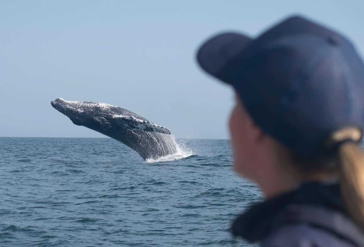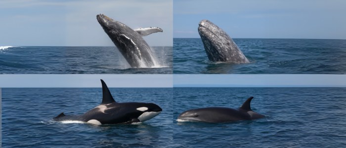 La plus célèbre est la baleine grise, mais on rencontre aussi des baleines à bosse, rorquals communs, parfois des orques et dauphins.