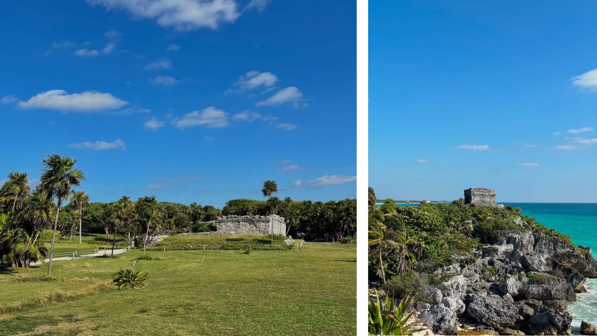 Tulum ne se résume pas seulement à un paradis de plages et de fêtes. La ville abrite aussi l’un des plus beaux sites historiques du pays. J’ai eu la chance de le visiter et cette expérience m’a profondément marquée. Perché sur une falaise, avec une vue imprenable sur les eaux turquoises des Caraïbes, ce site maya est un véritable trésor. Marcher entre les ruines, imaginer la vie des Mayas, tout en écoutant le bruit des vagues… c’est une expérience hors du commun qui m’a reconnectée avec l’histoire de ce lieu.